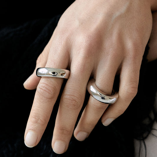 Our signature collection of stacking rings, meticulously crafted from solid 925 silver, brass and natural agates.