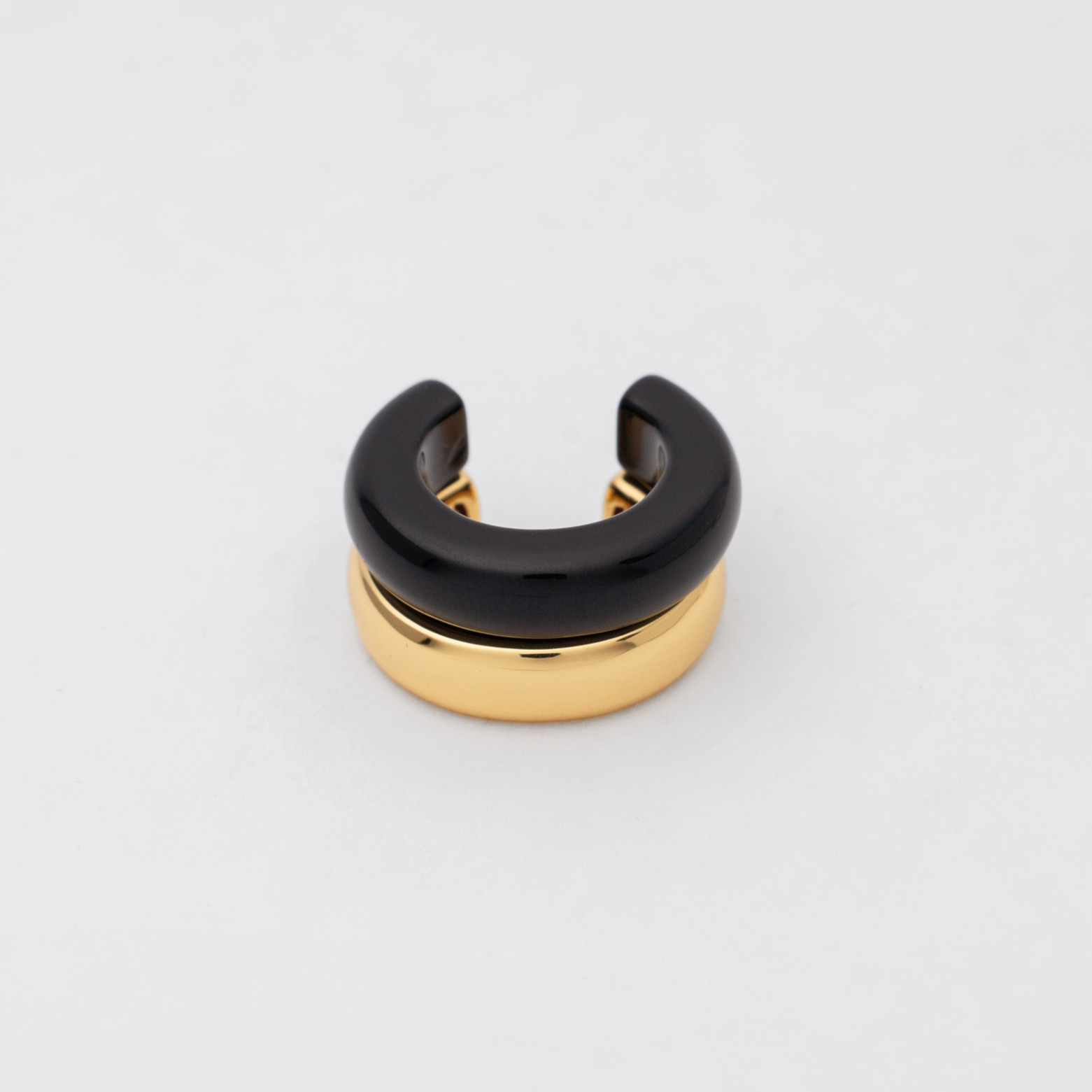 Classic combination of beautiful natural Black Agate with our signature "The Ring" in gold.